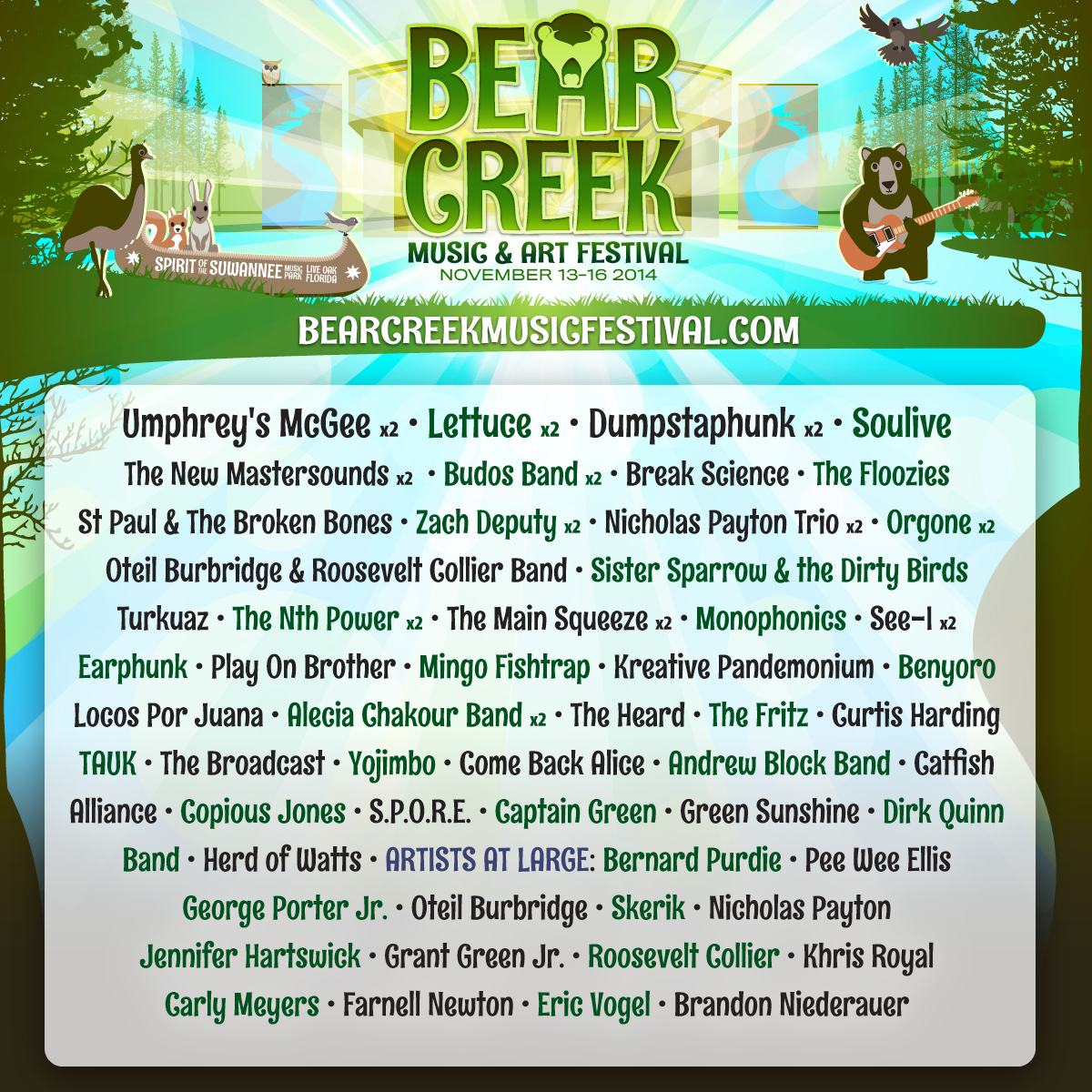BEAR CREEK MUSIC & ART FESTIVAL 2014 LINE-UP: