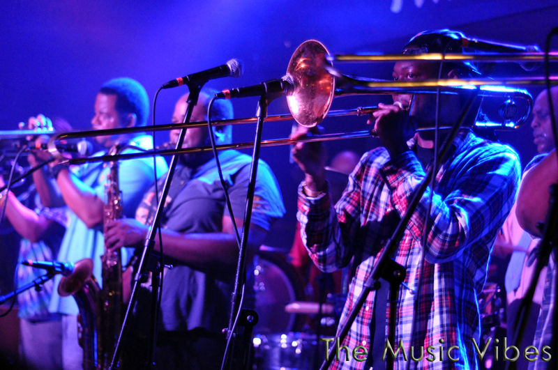 Friday, September 20th The Music Vibes immersed itself in a night of uplifting soulful music as The Soul Rebels and Karl Denson’s Tiny Universe took the stage of the quaint West Philadelphia venue, The Blockley. I must say that this 8-piece New Orleans style brass band truly left our team of music aficionados entirely speechless- but then we snapped out of it because we had a raving review to write! There was perhaps no better band to ease us into our first experience listening to a musical group that had the traditionally solely brass and percussion infrastructure. Not only was that night’s set incredible, but the members of the band themselves were some of the nicest and most genuine musicians we have met thus far.